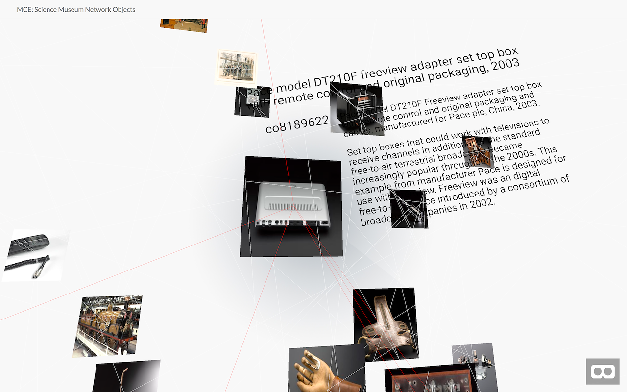 PhD Research Project in Collaboration with Birmingham Museums Trust. My PhD research brings together my background in museums and immersive digital art practice. My research investigates whether an immersive museum collection database can be an effective way for visitors and curators to explore collection objects and historical data. My study also explores ways visitors can interact with the collection database and whether visualising the collection in an immersive way can be useful for curators understanding of the collection and extracting multi-layered narratives for exhibition. The visualisation pulls together constellation of objects, promoting new understanding through links and changing contexts. The visualisation prototypes are being developed in Java Script, Unity 3D Game Engine and using data visualisation tools such as Gephi and R. I a developing prototypes with Birmingham Museums as part of the master planning process for a proposed redevelopment of the museum.