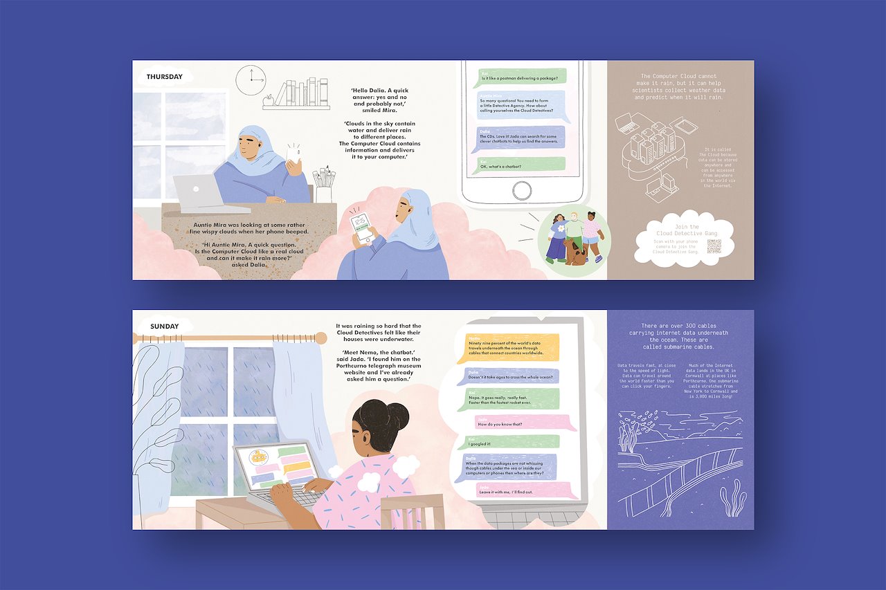Looking for The Cloud is an augmented reality children’s book which invites readers on a quest to explore how the internet works and how we can make it more environmentally sustainable. Readers can hold up your phone or tablet’s camera to the pages of the book and join in the adventure through fun chatbot characters and pages that come to life with a 3D virtual experience.